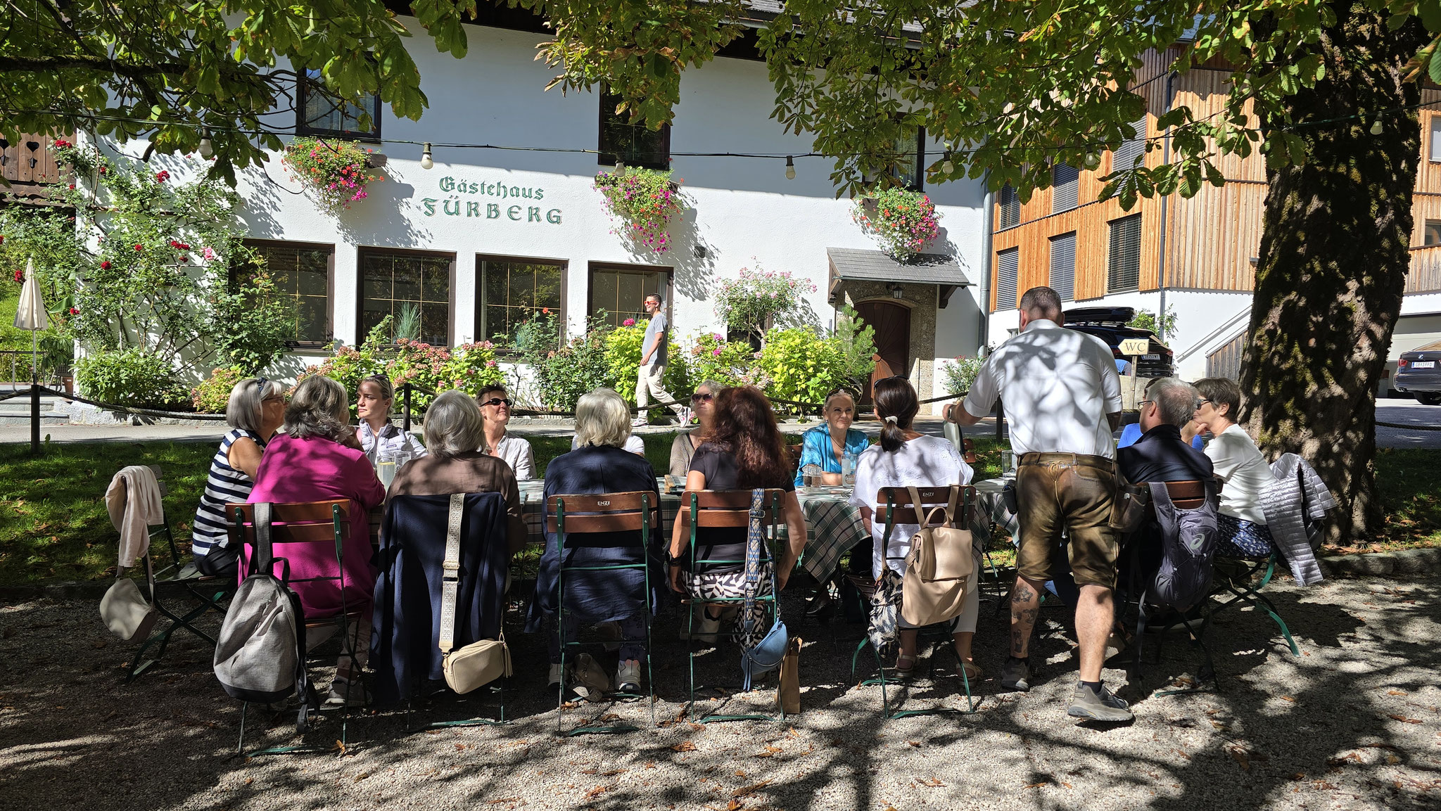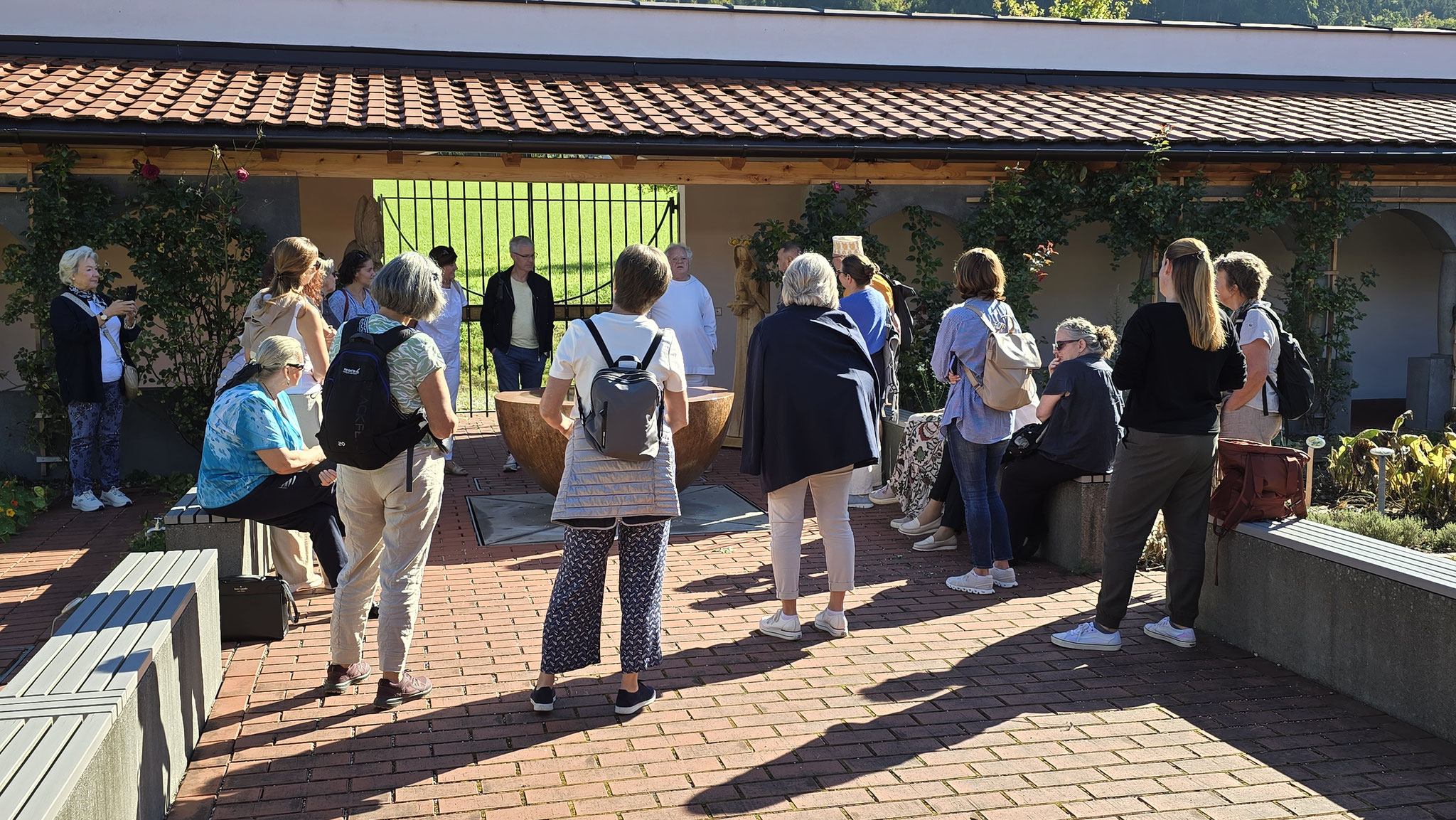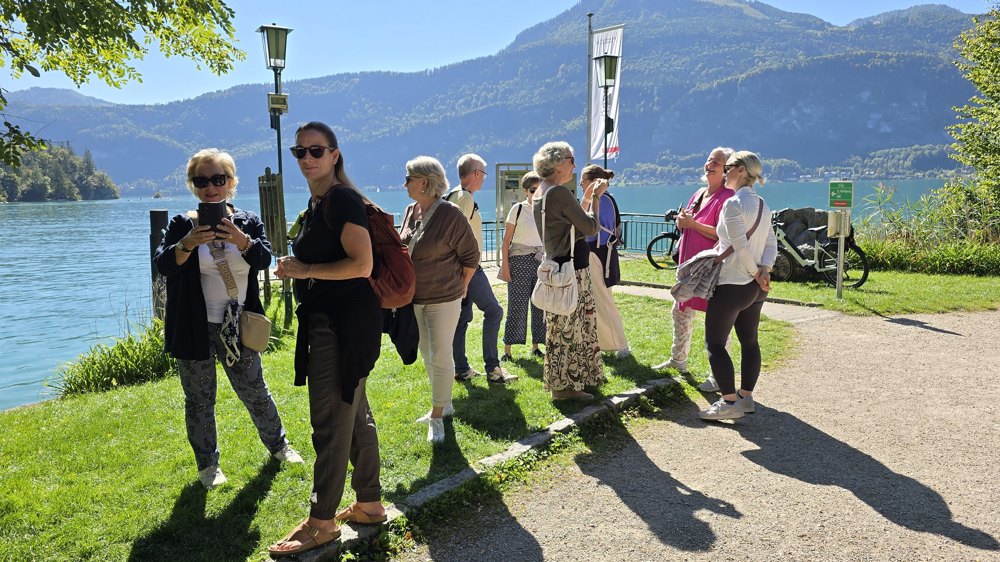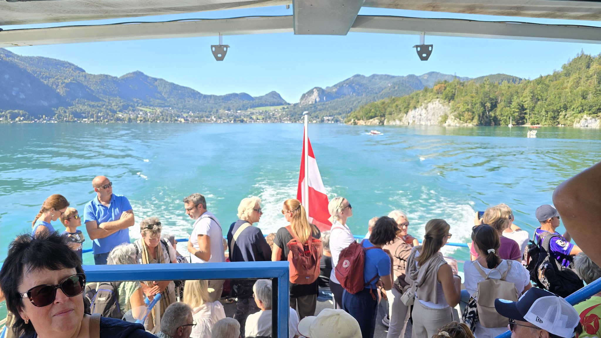 Rainer hatte ja das Preisgeld in Höhe von EUR 3.000,-, mit dem der Wüstenrot sein freiwilliges soziales Engagement im Hospiz ausgezeichnet hatte, dem Verein übergeben. Eine erste Aktivität war der gemeinsame Ausflug von Mitarbeiter*innen und Ehrenamtlichen am Samstag, den 20. September an den Wolfgangsee. Bei wunderbaren Wetter startete der Tag mit einem Besuch des Europa Klosters Gut Aich. Gründer, Pater Johannes Pausch, führte unsere Gruppe durch sein Lebenswerk. Von der wunderschönen Kapelle bis hin zum Kräutergarten - zu allem gab es spannende Geschichten zu erzählen und die Zeit verging wie im Fluge. Zu Fuss wurde dann die nächste Etappe vom Kloster bis zum Gasthof Fürberg flott erledigt, wo ein sehr feines Mittagessen auf alle Teilnehmer*innen wartete. Frisch gestärkt ging es anschliessend per Schiff noch weiter nach St. Wolfgang.