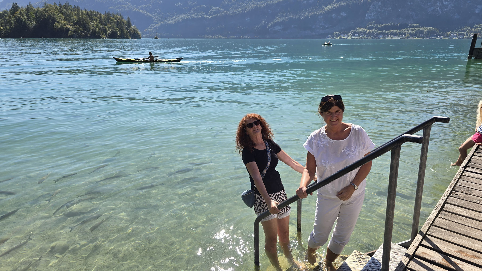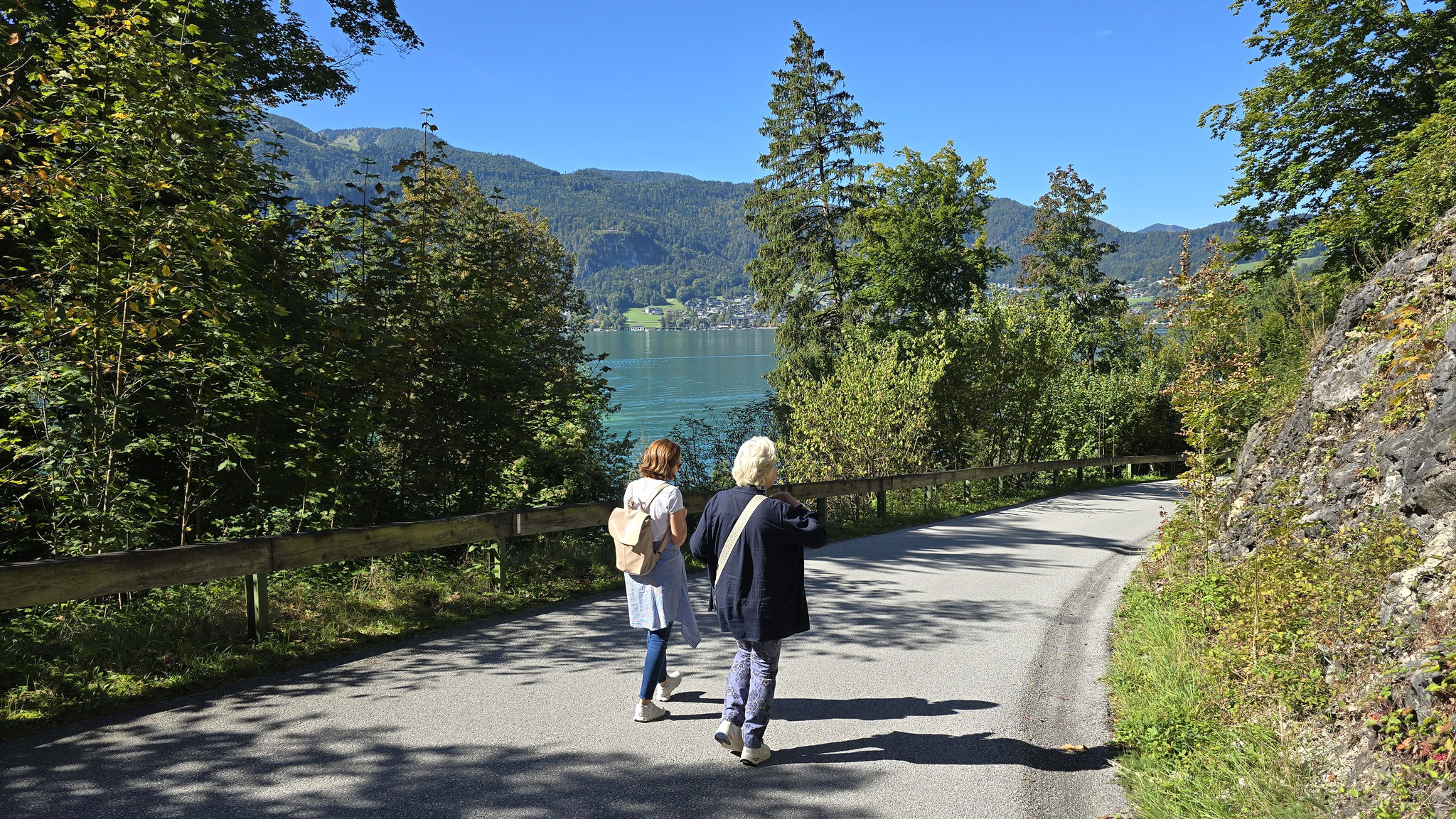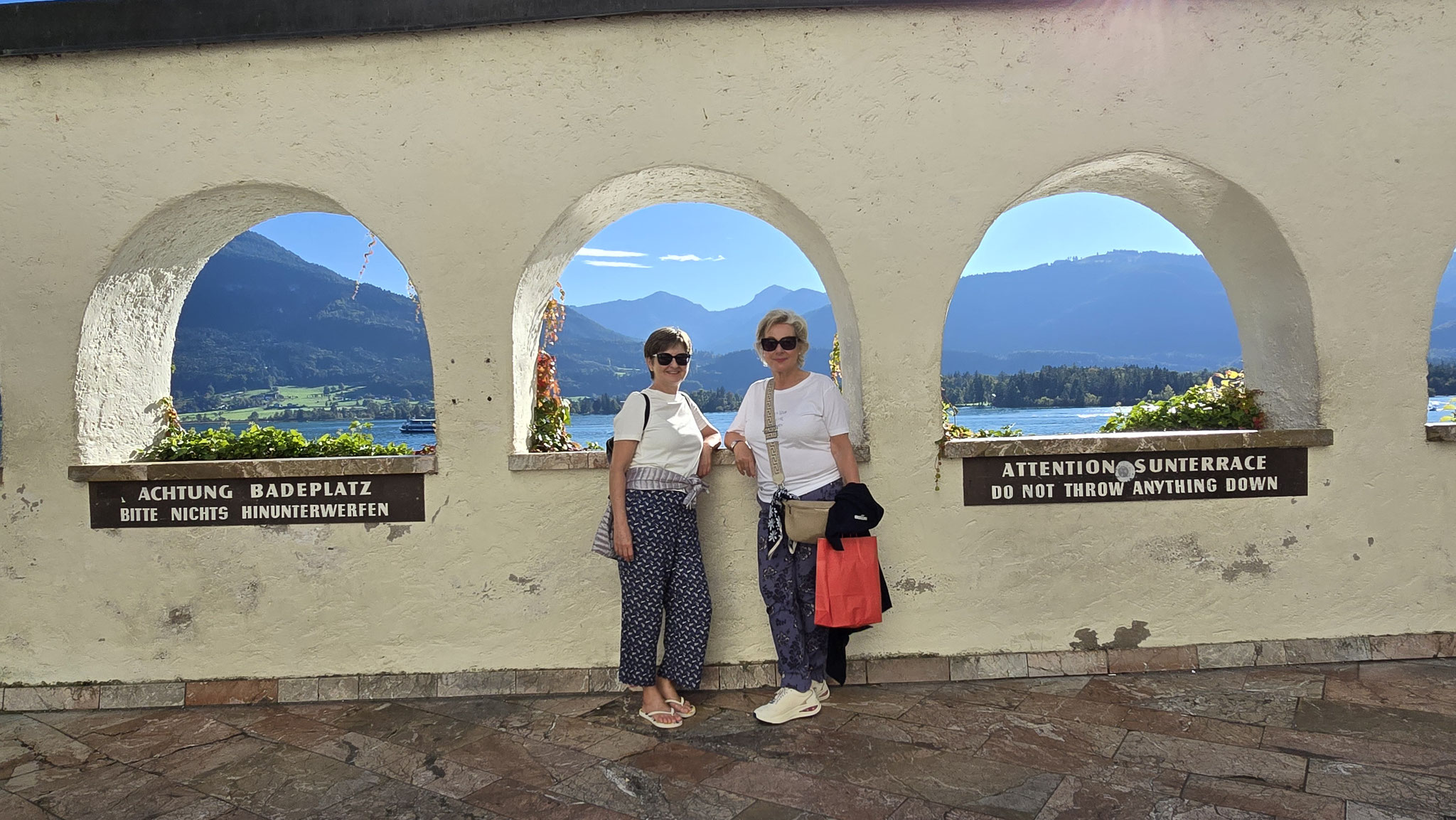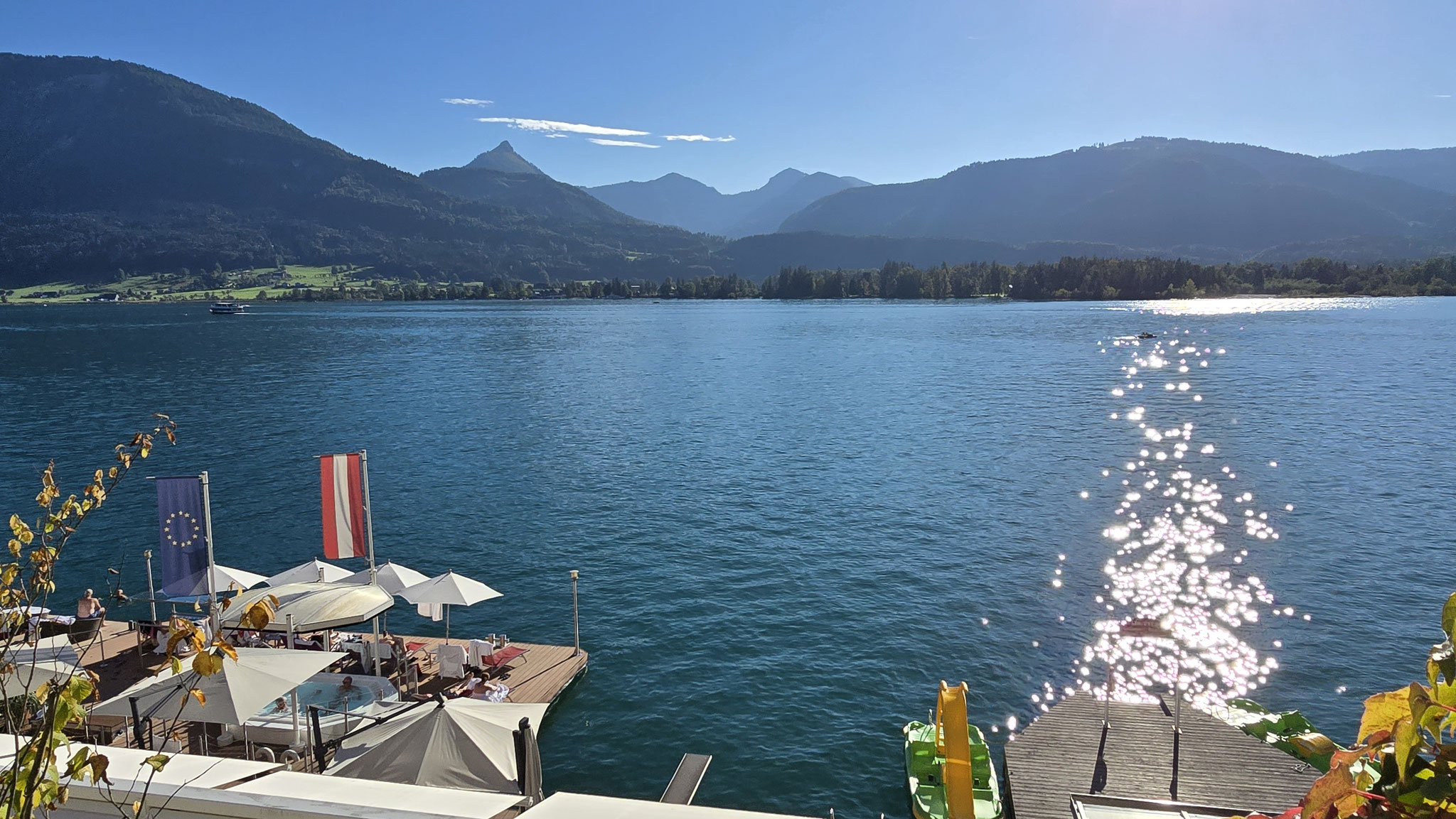 Rainer hatte ja das Preisgeld in Höhe von EUR 3.000,-, mit dem der Wüstenrot sein freiwilliges soziales Engagement im Hospiz ausgezeichnet hatte, dem Verein übergeben. Eine erste Aktivität war der gemeinsame Ausflug von Mitarbeiter*innen und Ehrenamtlichen am Samstag, den 20. September an den Wolfgangsee. Bei wunderbaren Wetter startete der Tag mit einem Besuch des Europa Klosters Gut Aich. Gründer, Pater Johannes Pausch, führte unsere Gruppe durch sein Lebenswerk. Von der wunderschönen Kapelle bis hin zum Kräutergarten - zu allem gab es spannende Geschichten zu erzählen und die Zeit verging wie im Fluge. Zu Fuss wurde dann die nächste Etappe vom Kloster bis zum Gasthof Fürberg flott erledigt, wo ein sehr feines Mittagessen auf alle Teilnehmer*innen wartete. Frisch gestärkt ging es anschliessend per Schiff noch weiter nach St. Wolfgang.